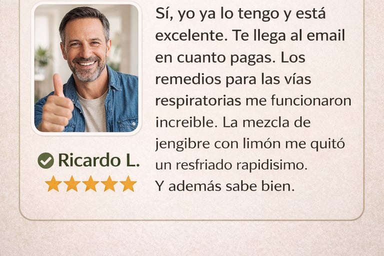 Todo está organizado por síntoma, con instrucciones simples e ingredientes que consigues en cualquier lado. Por fin tienes una guía seria, sin dar vueltas ni buscar en Google.